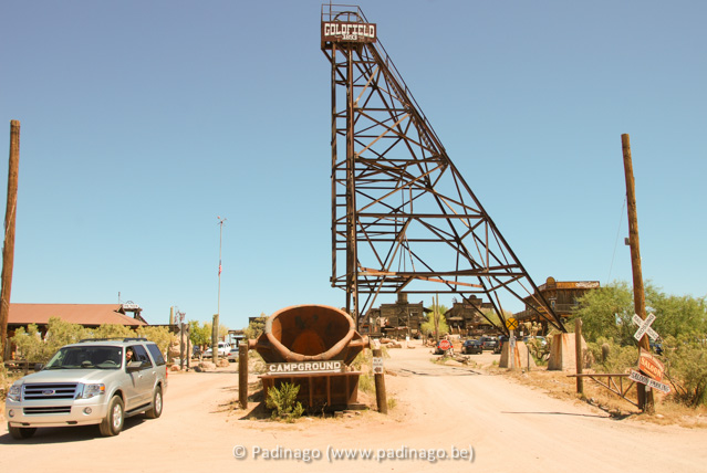 Around 10am we arrive at the “Goldfield Ghost Town & Mine” where, for the first time, we feel the real Arizona sun! Lucien does not doubt and buys a nice cowboy hat and he is looking great! The town is a nice attraction. After a while we drive towards “Canyon Lake” where we take a picture of the overview before arriving at the lake. It seems to us that this lake is more used by the locals to escape the heat of the burning sun.