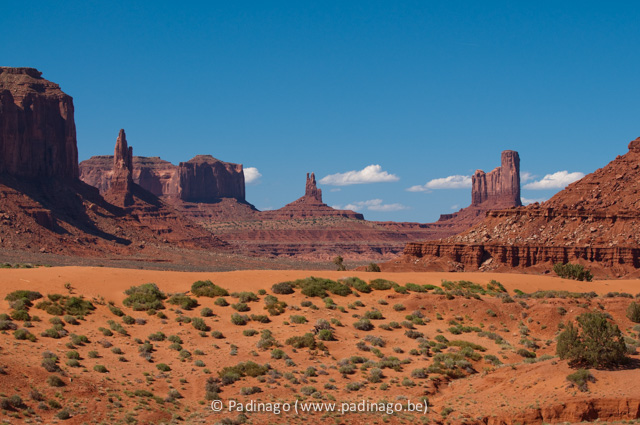 A bit before 12 noon we arrive at the entrance and pay 5$ per person. We drive towards the park where there is a nice viewpoint next to the visitor center with view on the “East and West Mitten”. You can enter the Navajo Tribal Park and reach the loop around the park. The beautiful moments are shot with the camera. A bit later we reach the loop and there we see the “Dineh Stables”. Now something strange is happening, when we watch Nathalie’s face you can see something happening! You can see that huge smile on her face with wide open eyes… Strange isn’t it!? We park the car and inform if Nathalie can hire a horse to gallop here as she did many years ago. She is lucky. She will ride a horse called “Shadow” which is a real mustang. Otis, the local guide, will accompany her. They are only the two of them and as Nathalie is an experienced rider, which Otis notices immediately, she asks if it is also possible to go fast and that is no problem. This will be fun! LuSo and Patrick leave for an hour and a bit further at the “Rain God Mesa” they enjoy a lunch. After lunch we pick up Nathalie at the stables and she is just over the moon. The rest of this day she will have that great smile on her face…