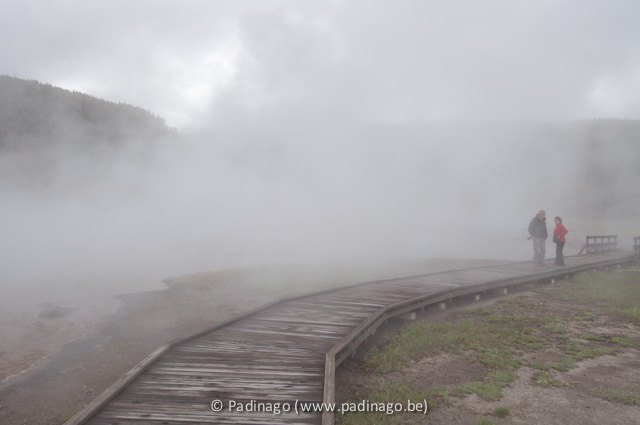 We drive on and go to Grand Prismatic Spring. Every time this is an amazing view! At that moment you realize that Yellowstone is a caldera (a super volcano crater whose roof of the magma room is not supported) of about 55 by 72km! You cannot start thinking about it...