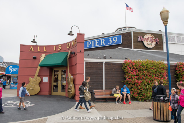 Then we walk back and take the hop on hop off bus which gives us a great tour of the famous places, we pass through Chinatown, Painted Ladies (the famous Victorian houses), Golden Gate bridge (here we get of because of some noisy people behind us make it impossible for us to hear the guide and we have a hot chocolate as it is very windy and cold), we take our time for some nice pictures of the bridge in the fog which gives a great effect and then we hop on the next bus back to the pier (passing close to Lombard street where there is a huge line of cars waiting to drive down the croockiest street). We ride the tour twice and at the end we get of at the pier, it is now very cold! We have a hot coffee at café Boudin, walk around the shops and back to the hotel for a hot shower.