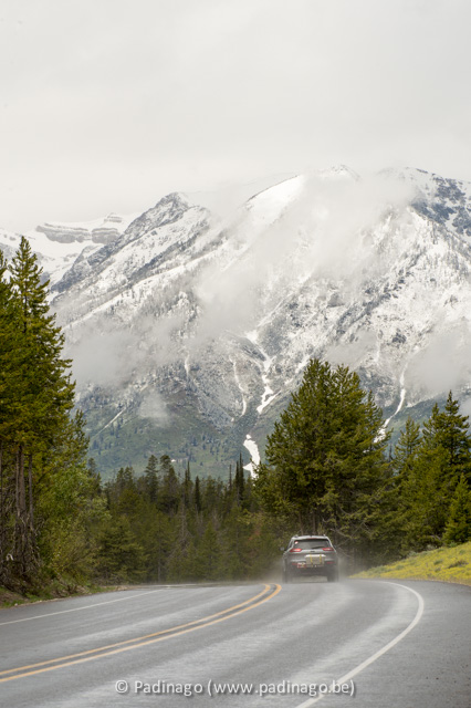 After our breakfast at the hotel we drive to the south of Yellowstone towards Grand Teton. Again, the weather is not good and it already starts snowing but this results in some idyllic views and we enjoy it.