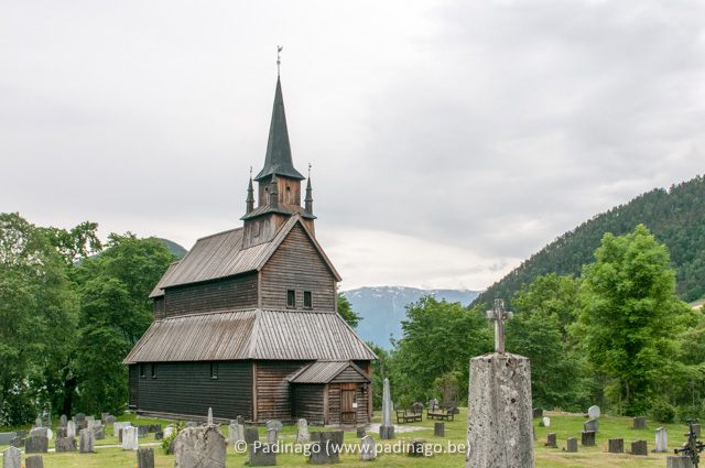 Then we drive to the Bergsetbreen and take some pictures. Then we drive on to the Kaupanger stave church. We also wanted to see the Urnes stave church but then we had to take the last ferry up and the last one back and that means we would have a very short time and we do not want to risk to miss the last one back.