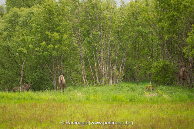 Then we drive around and at the Hadsel kirk we see 3 moose!