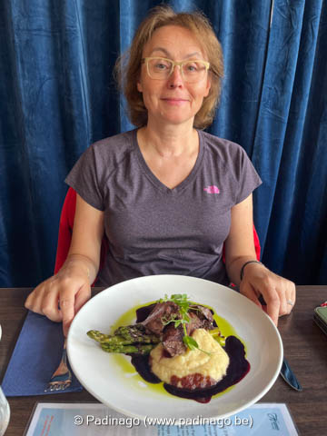 Dinner at 7pm. Both have reindeer steak.