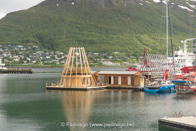 In the afternoon we walk over the Tromsøbrua to Tromsdalen kirke (the Arctic Cathedral), Europe’s second-largest mozaïc glass window, very impressive building.